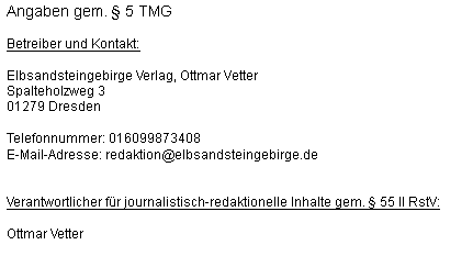 Durch den Einsatz von Cookies kann der Elbsandsteingebirge Verlag den Nutzern dieser Internetseite nutzerfreundlichere Services bereitstellen, die ohne die Cookie-Setzung nicht möglich wären.